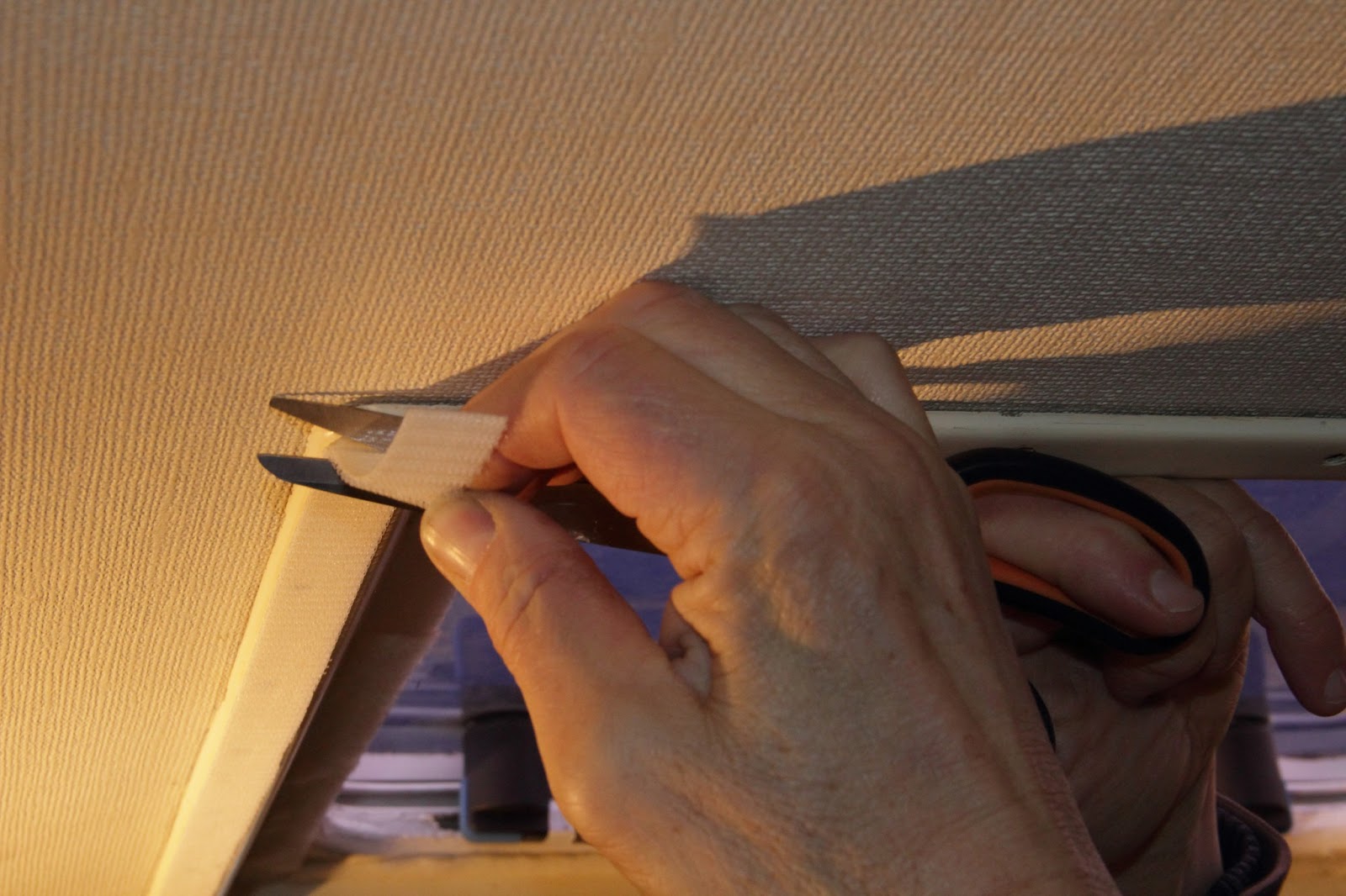 Bevestig het klittenband rondom uw vluchtluik of dekluik, uiteraard kunt dit product ook gebruiken om andere te ramen te verduisteren. indien u een hor met een speciale afmeting wenst kunt u ook bij Bootzeil terecht.
